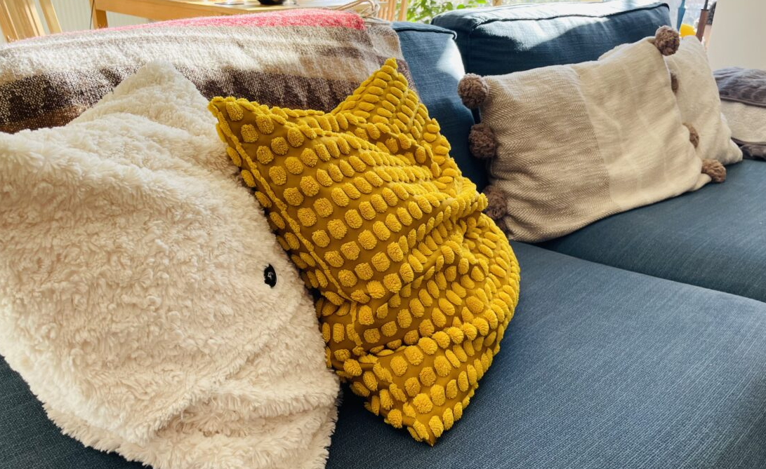 Nejrychlejší cesta je přehodit přes sedačku stylovou deku či kožešinku a doplnit ji různě barevnými polštáři. Nebojte se kontrastů, vzorů nebo netradičních materiálů – opticky změní vzhled sedačky a odvedou pozornost od nedokonalostí